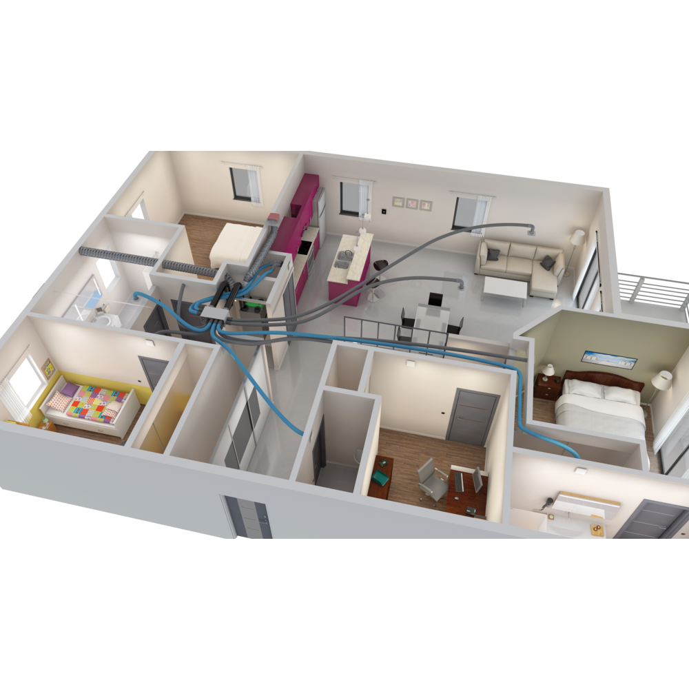 Cet air est traité par des filtres personnalisables qui garantissent un air sain dans le logement.