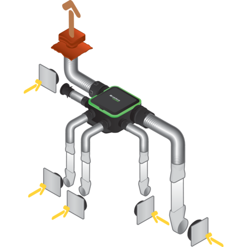 - raccordement des conduits souples directement sur le groupe,