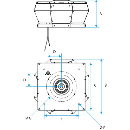 - construction en aluminium AlMg3 résistant aux intempéries avec une hauteur très faible. Le bloc moteur bascule pour faciliter l’installation (accessoires en option) et la maintenance,
