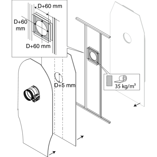 - EI 120 S -500Pa op muren en platen van beton, cellenbeton, gipsplaat van type F, montage uit het midden PROMAT / Geostaff