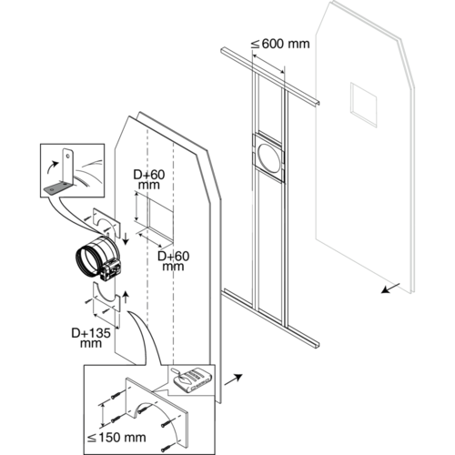 - Plaatsing op lichte scheidingswanden met installatiebeugels